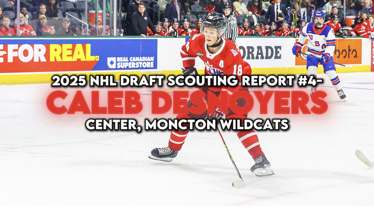 Caleb Desnoyers plays for the Moncton Wildcats in the QMJHL, and is a top prospect eligible for the 2025 NHL Draft. Read my new scouting report on what makes him such a special talent!